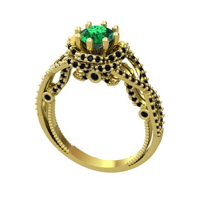 Yeşil kuvars ve siyah zirkon 8 ayar altın yüzük