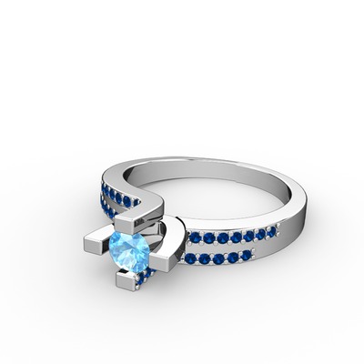 Akuamarin ve lab safir 925 ayar gümüş yüzük