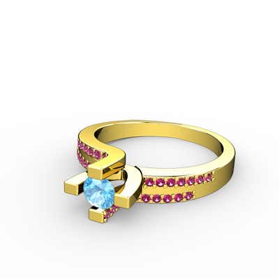 Akuamarin ve rodolit garnet 18 ayar altın yüzük