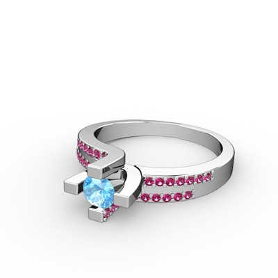 Akuamarin ve rodolit garnet 925 ayar gümüş yüzük