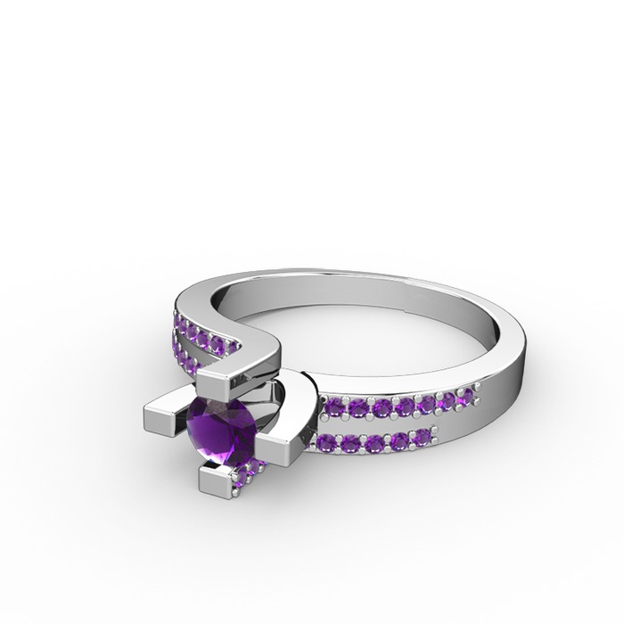 Ametist 14 ayar beyaz altın yüzük