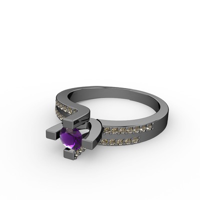 Ametist ve dumanlı kuvars 925 ayar siyah rodyum kaplama gümüş yüzük