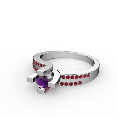 Ametist ve garnet 14 ayar beyaz altın yüzük