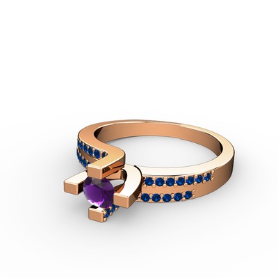 Ametist ve lab safir 8 ayar rose altın yüzük