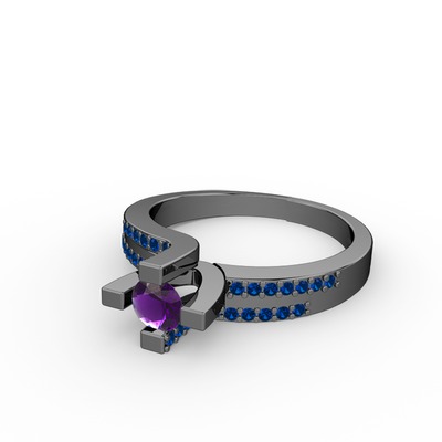 Ametist ve lab safir 925 ayar siyah rodyum kaplama gümüş yüzük