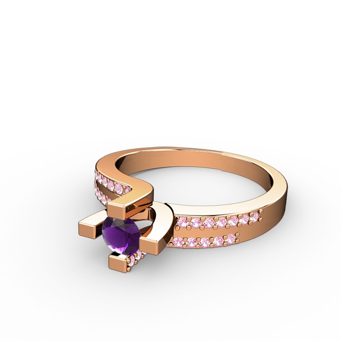 Ametist ve pembe kuvars 14 ayar rose altın yüzük