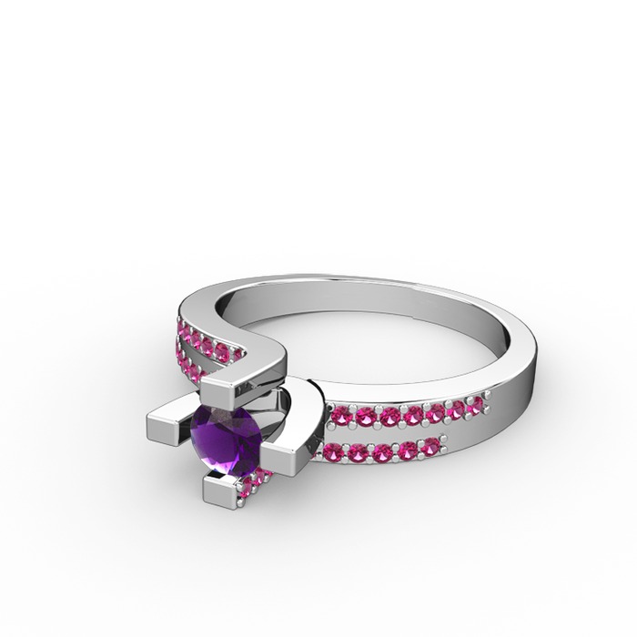 Ametist ve rodolit garnet 14 ayar beyaz altın yüzük