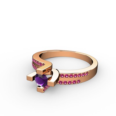 Ametist ve rodolit garnet 8 ayar rose altın yüzük