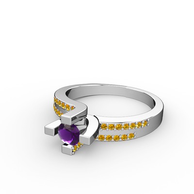 Ametist ve sitrin 14 ayar beyaz altın yüzük