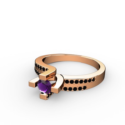 Ametist ve siyah zirkon 14 ayar rose altın yüzük