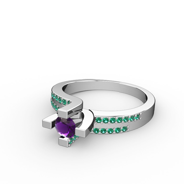 Ametist ve yeşil kuvars 18 ayar beyaz altın yüzük