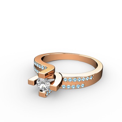 Beyaz zirkon ve akuamarin 8 ayar rose altın yüzük