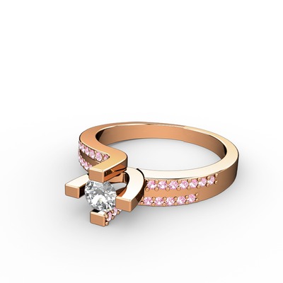 Beyaz zirkon ve pembe kuvars 925 ayar rose altın kaplama gümüş yüzük