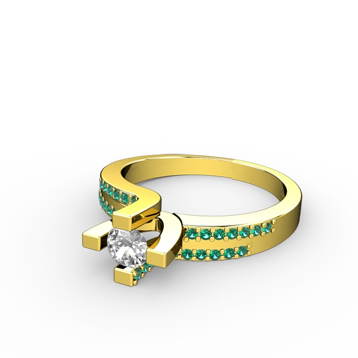 Beyaz zirkon ve yeşil kuvars 925 ayar altın kaplama gümüş yüzük
