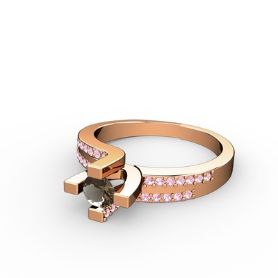 Dumanlı kuvars ve pembe kuvars 18 ayar rose altın yüzük