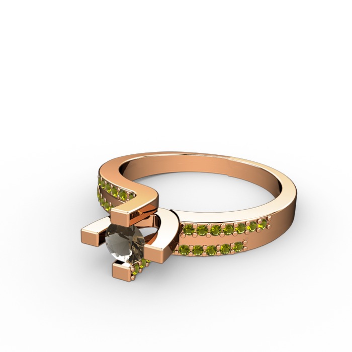 Dumanlı kuvars ve peridot 18 ayar rose altın yüzük