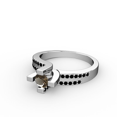Dumanlı kuvars ve siyah zirkon 14 ayar beyaz altın yüzük