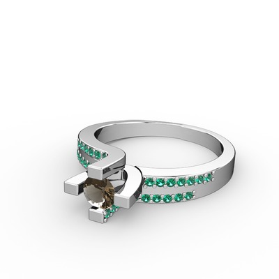 Dumanlı kuvars ve yeşil kuvars 14 ayar beyaz altın yüzük