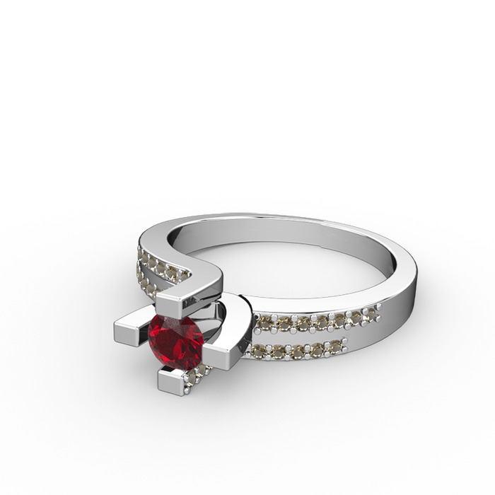 Garnet ve dumanlı kuvars 18 ayar beyaz altın yüzük