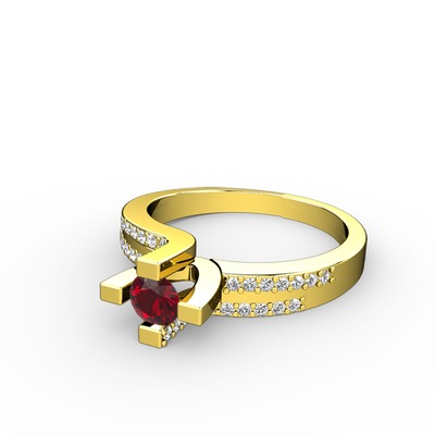 Garnet ve pırlanta 14 ayar altın yüzük (0.2992 karat)