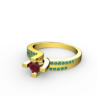 Garnet ve yeşil kuvars 925 ayar altın kaplama gümüş yüzük
