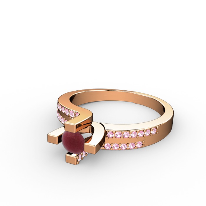 Kök yakut ve pembe kuvars 14 ayar rose altın yüzük