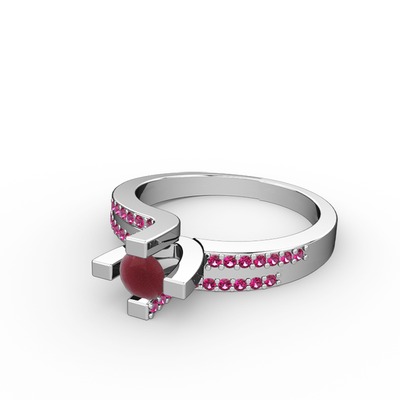 Kök yakut ve rodolit garnet 14 ayar beyaz altın yüzük