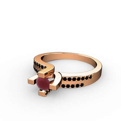 Kök yakut ve siyah zirkon 18 ayar rose altın yüzük