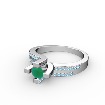 Kök zümrüt ve akuamarin 8 ayar beyaz altın yüzük
