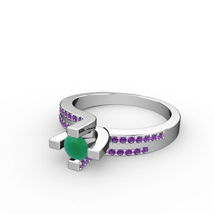 Kök zümrüt ve ametist 14 ayar beyaz altın yüzük
