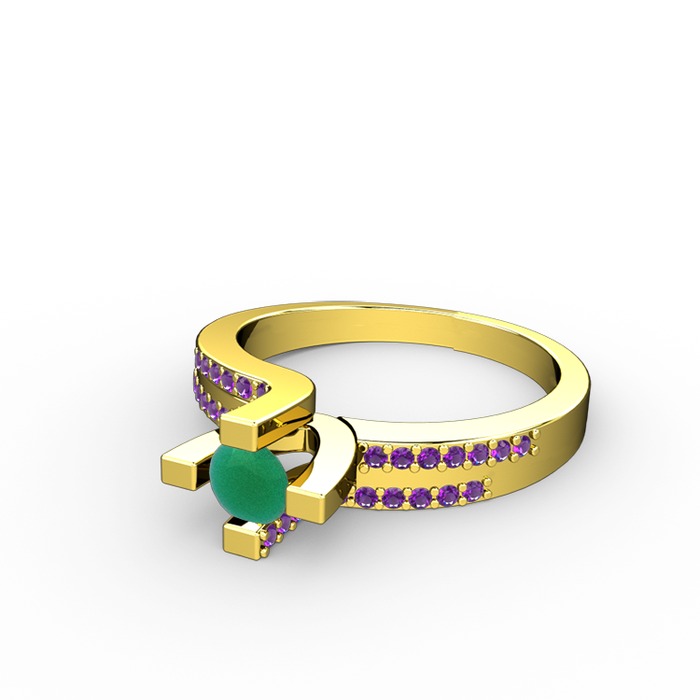 Kök zümrüt ve ametist 8 ayar altın yüzük