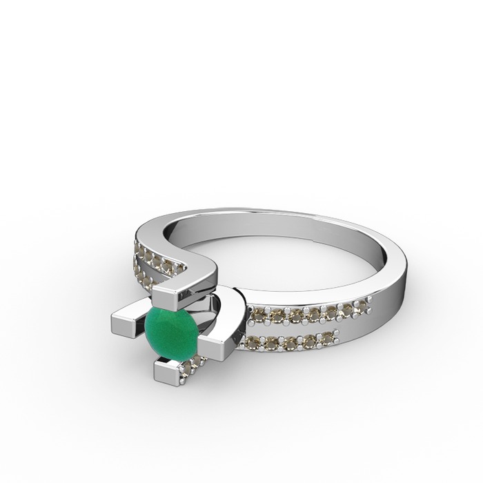 Kök zümrüt ve dumanlı kuvars 18 ayar beyaz altın yüzük