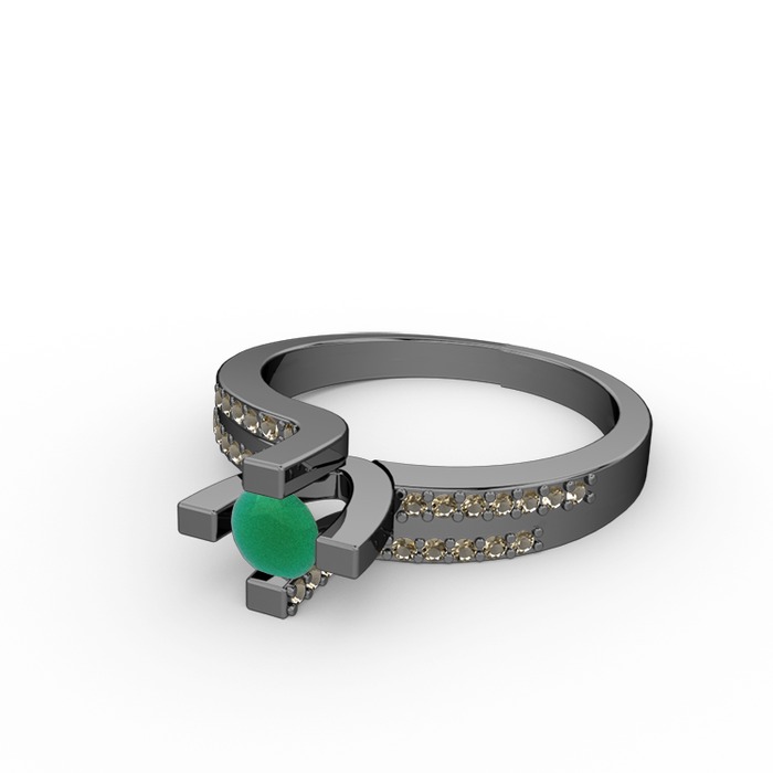 Kök zümrüt ve dumanlı kuvars 925 ayar siyah rodyum kaplama gümüş yüzük