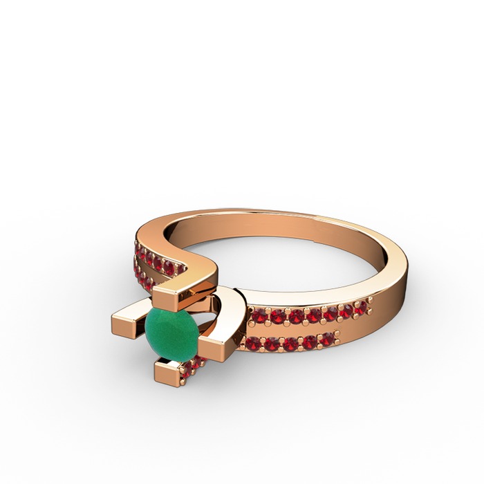 Kök zümrüt ve garnet 14 ayar rose altın yüzük