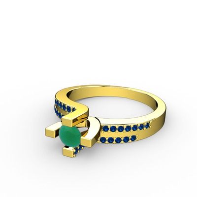 Kök zümrüt ve lab safir 14 ayar altın yüzük