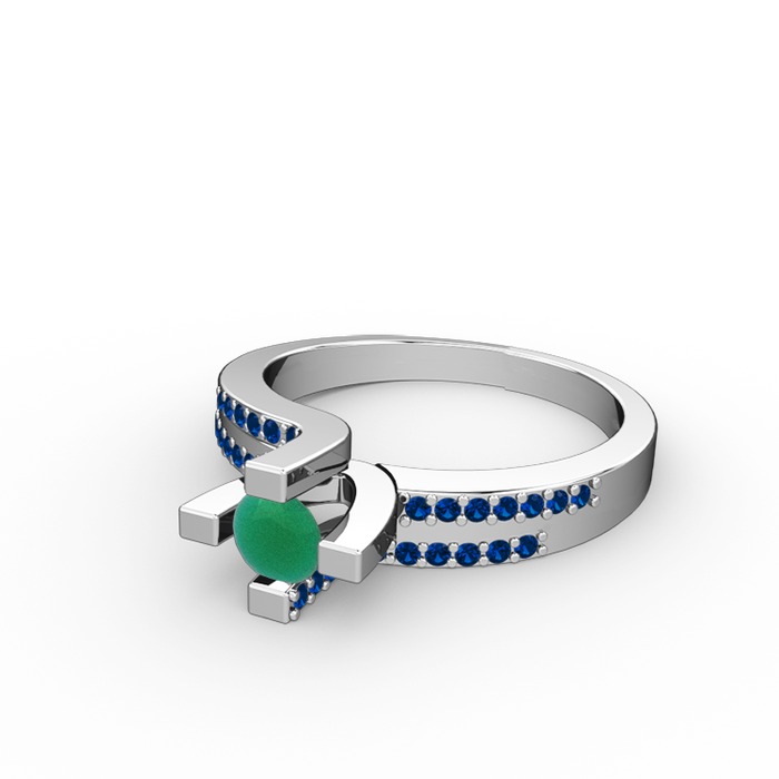 Kök zümrüt ve lab safir 14 ayar beyaz altın yüzük
