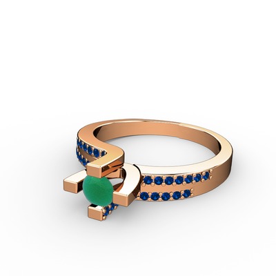 Kök zümrüt ve lab safir 925 ayar rose altın kaplama gümüş yüzük