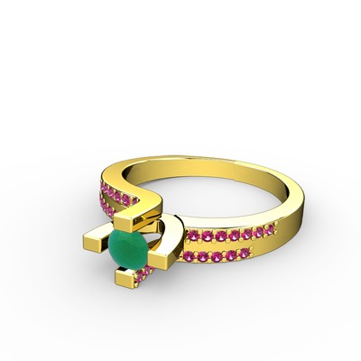 Kök zümrüt ve rodolit garnet 18 ayar altın yüzük