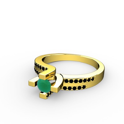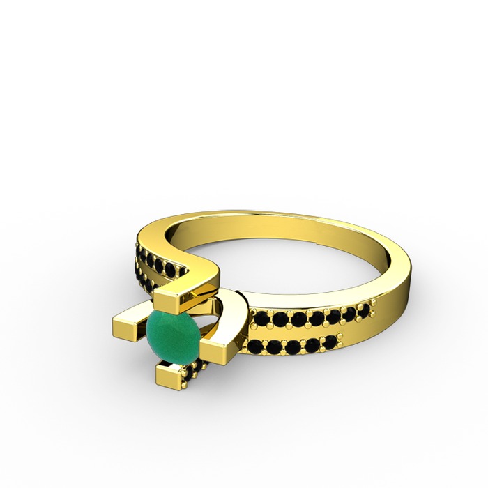 Kök zümrüt ve siyah zirkon 925 ayar altın kaplama gümüş yüzük
