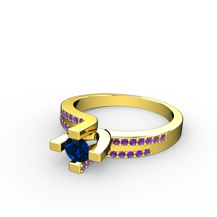 Lab safir ve ametist 925 ayar altın kaplama gümüş yüzük