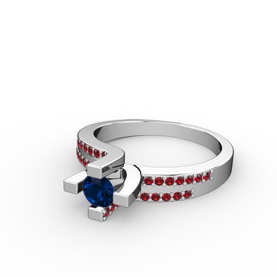 Lab safir ve garnet 18 ayar beyaz altın yüzük