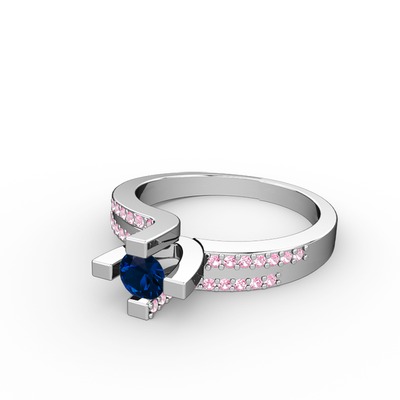 Lab safir ve pembe kuvars 8 ayar beyaz altın yüzük