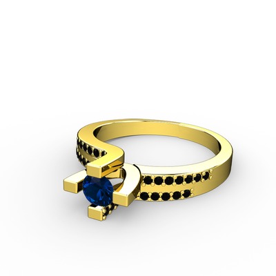 Lab safir ve siyah zirkon 925 ayar altın kaplama gümüş yüzük