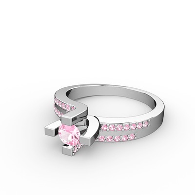 Pembe kuvars 14 ayar beyaz altın yüzük