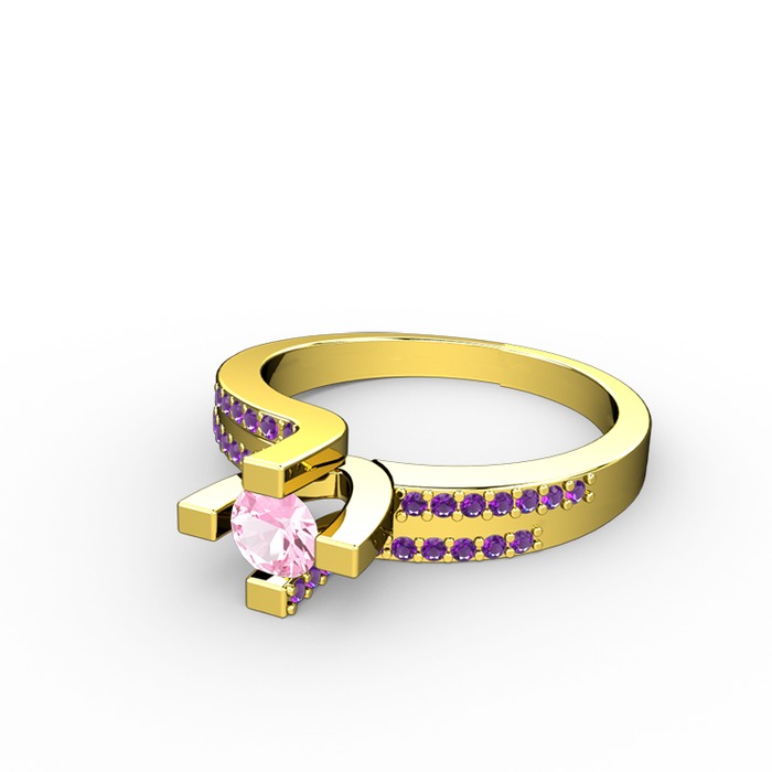 Pembe kuvars ve ametist 925 ayar altın kaplama gümüş yüzük