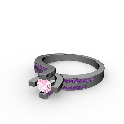 Pembe kuvars ve ametist 925 ayar siyah rodyum kaplama gümüş yüzük