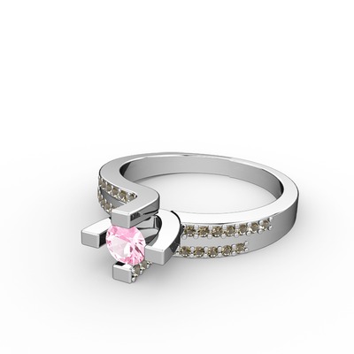 Pembe kuvars ve dumanlı kuvars 18 ayar beyaz altın yüzük