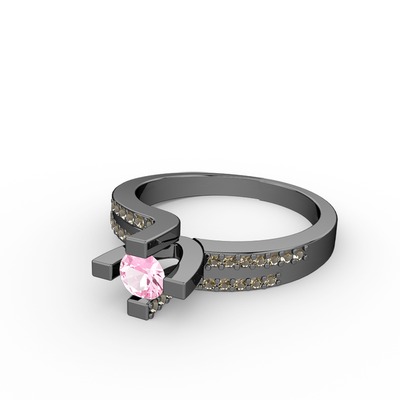 Pembe kuvars ve dumanlı kuvars 925 ayar siyah rodyum kaplama gümüş yüzük