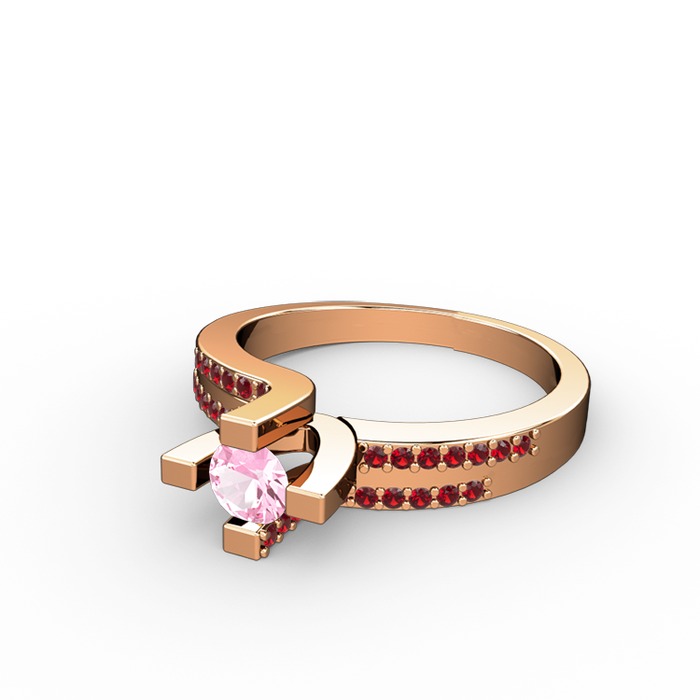 Pembe kuvars ve garnet 14 ayar rose altın yüzük