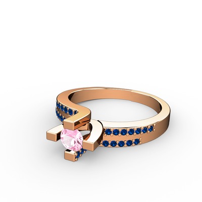 Pembe kuvars ve lab safir 14 ayar rose altın yüzük